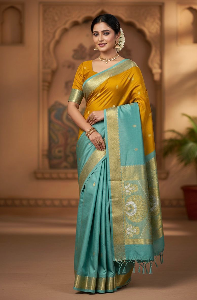 Experience the luxury of soft crepe paired with a grand traditional border. Perfect for poojas, parties, and weddings.